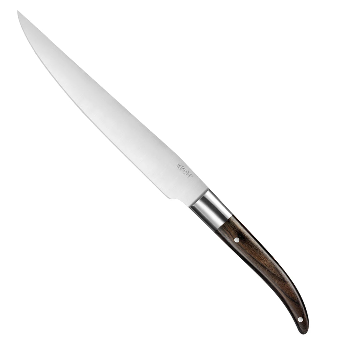 The stamped Laguiole bee is a mark of prestige, representing the pinnacle of cutlery craftsmanship. The monobloc full tang construction provides exceptional durability, strength, and balance. This robust design minimizes the risk of blade breakage or handle detachment, ensuring a knife that will stand the test of time.